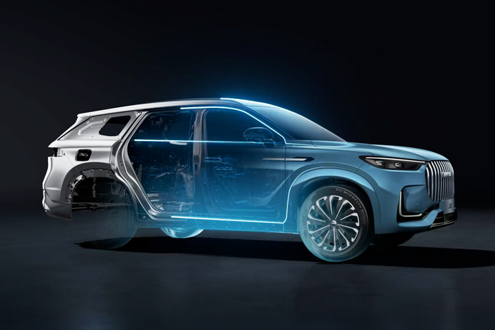 На 85% собран из высокопрочных сталей с пределом прочности на разрыв детали 1500 МПа. 18% деталей отштампованы методом горячей штамповки